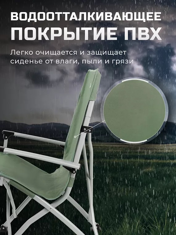 - Водоотталкивающий материал сиденья с плотностью 600D и покрытием ПВХ защищает от влаги и легко очищается.