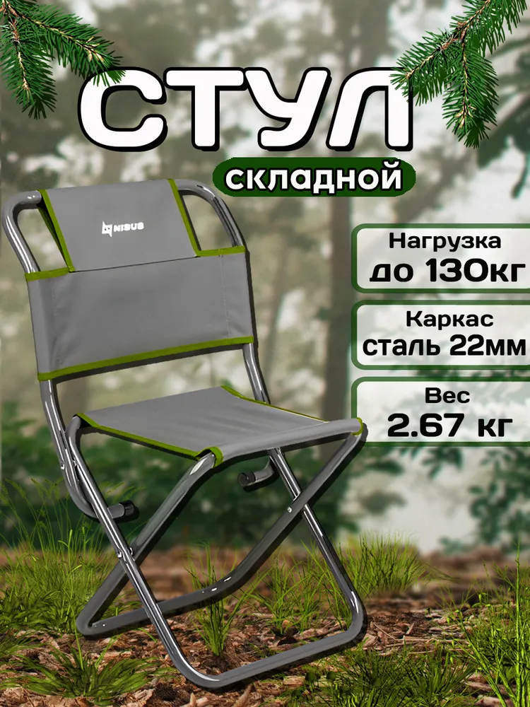 Стул туристический NISUS T-N-TC-400.22s-GR со спинкой СР-400.22c (ст.труба д22