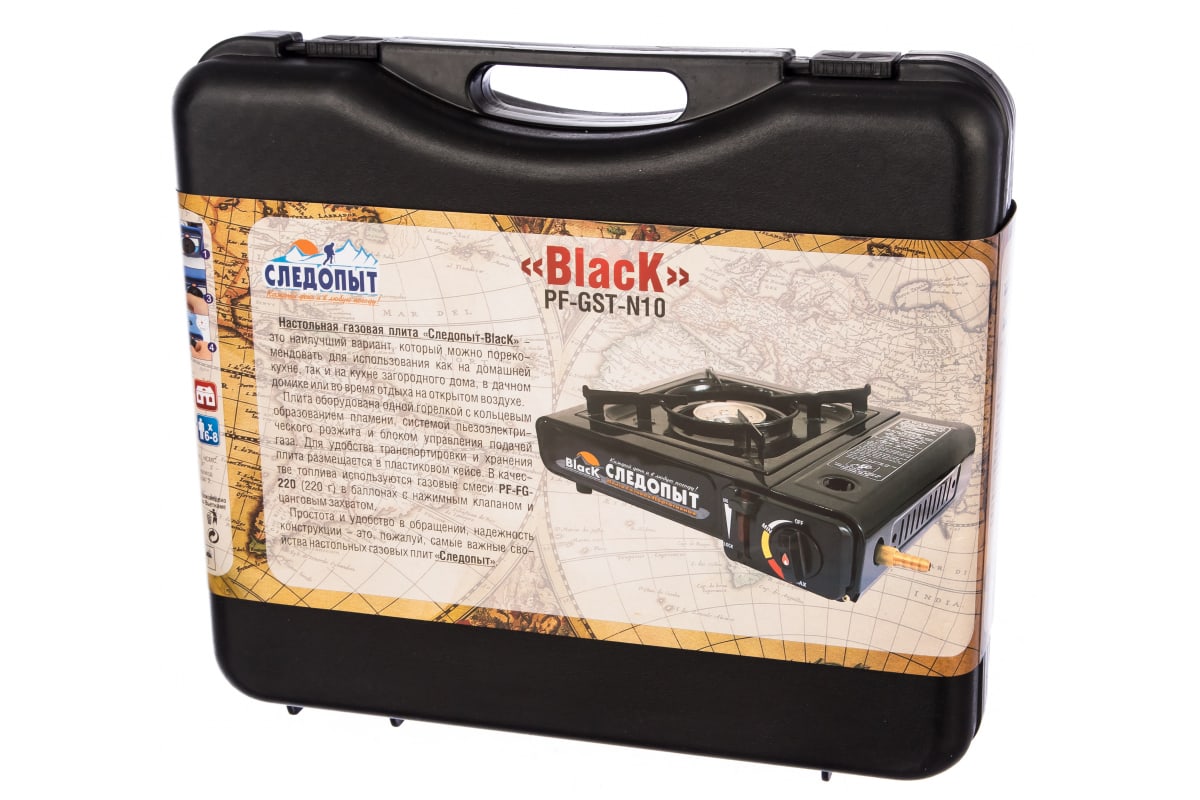 Плита наст. газовая СЛЕДОПЫТ PF-GST-N10 Black (с переходником)