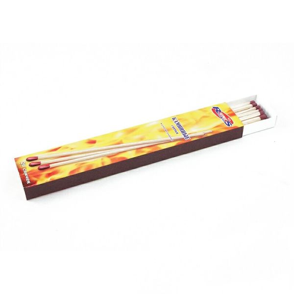 Спички каминные 20 шт RUNIS 1-044 -Используются для розжига костров, каминов, барбекю, печей, могут использоваться для пиротехники. Хорошо загораются и исключают риск ожогов благодаря большой длине. На боковой стороне упаковки находится тёрка для зажигания об нее спички с помощью трения. Длина: 210 мм.