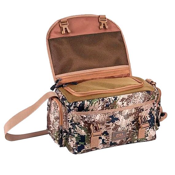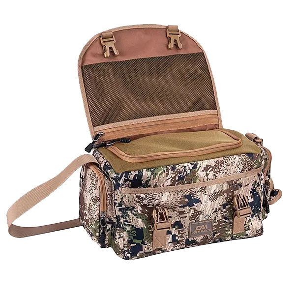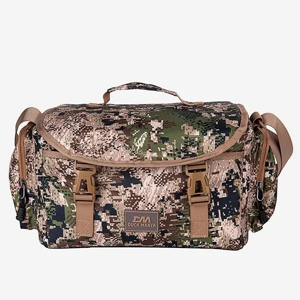 Охотничья сумка Duck Mania, разработана для охотников с учетом их опыта. Можно применять как для переноски патронов или иных важных вещей требующих дополнительной защиты до места охоты. Сумка выполнена из прочного материала Oxford 900D с водостойкой пропиткой PU. Стенки сумки имеют противоударную мягкую вставку. Внутренний отсек выполнен из водонепроницаемого материала по принципу «сумка в сумке» для надежной защиты от влаги даже если стоит на влажной поверхности. Дно прорезинено. Качественная фурнитура выдерживает высокие нагрузки. Тесты показали, что 10 кг веса этой сумке не предел! Сумка имеет плечевой ремень с мягкой противоскользящей вставкой, а также ручку для переноски на верхнем клапане, можно переносить как на плече, так и в руках. Сумка снабжена множеством карманов: два боковых кармана на молнии, карман на молнии спереди, а также, карман из сетки на молнии под основным клапаном.