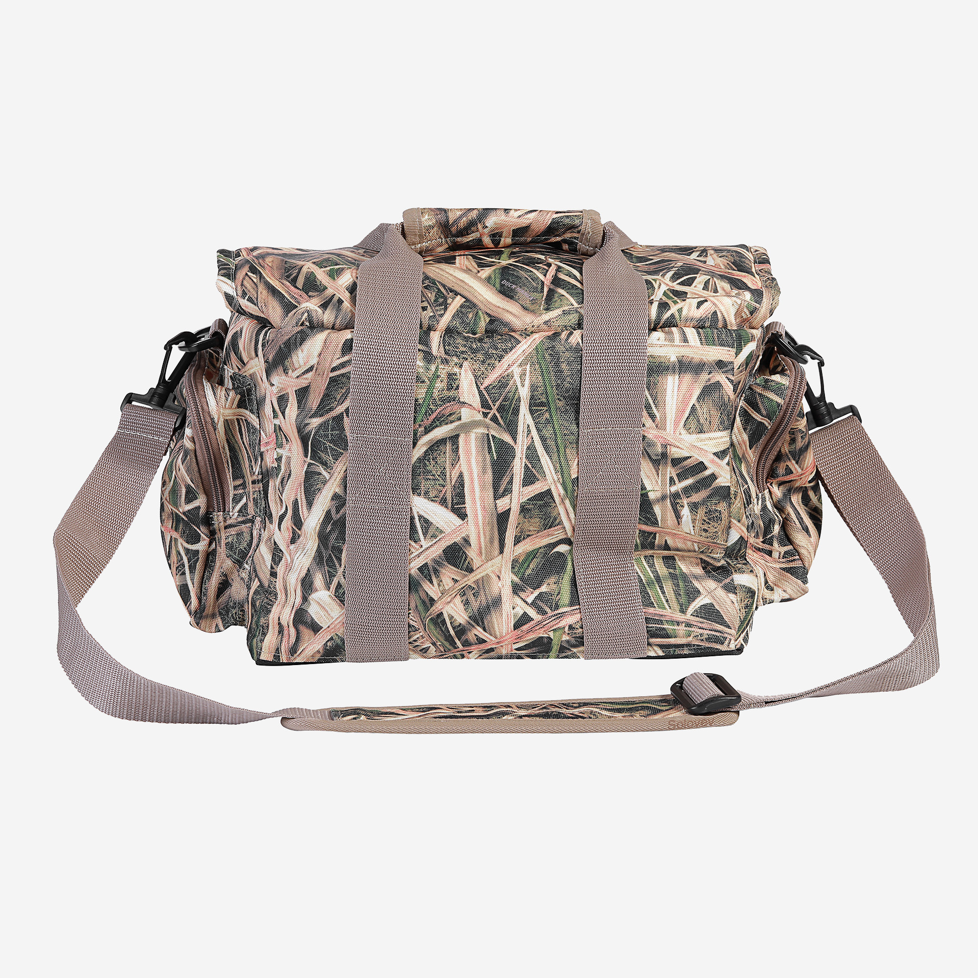 Охотничья сумка Duck Mania, разработана для охотников с учетом их опыта. Можно применять как для переноски патронов до места охоты, так и для других важных вещей. Сумка выполнена из прочного материала Oxford 900D, а также защитит ваши вещи от попадания влаги. Внутренний отсек выполнен из нескольких слоев и разделен мягкой вставкой, что защищает предметы от ударов. Качественная фурнитура выдерживает высокие нагрузки. Тесты показали, что 10 кг веса этой сумке не предел! Сумка имеет плечевой ремень с мягкой вставкой, а также ручку для переноски на верхнем клапане, можно переносить как на плече, так и в руках. Так же в сумке присутствует множество карманов: два боковых кармана на молнии, карман на молнии спереди, а также, карман из сетки на молнии под основным клапаном.