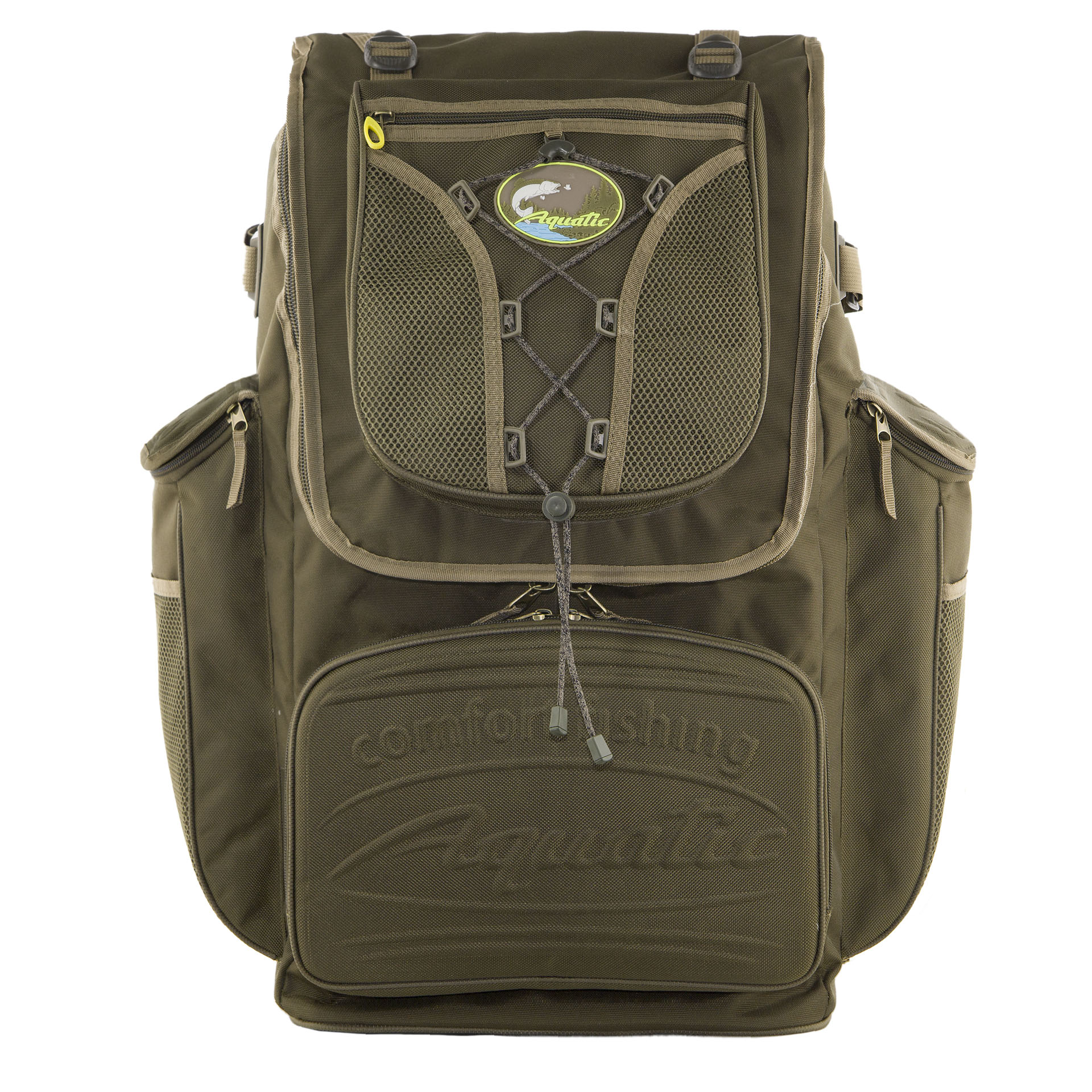 Рюкзак Aquatic объемом 65 литров изготавливается из непромокаемых нейлоновых материалов. Рюкзак имеет большой удобный вход в основное отделение, а также 4 объемных кармана с возможность закрепления дополнительных вещей снаружи. Усиленная пластиком спинка имеет мягкую основу для комфортного ношения тяжелых и твердых предметов. Подвеска рюкзака с грудной и поясной регулировкой.